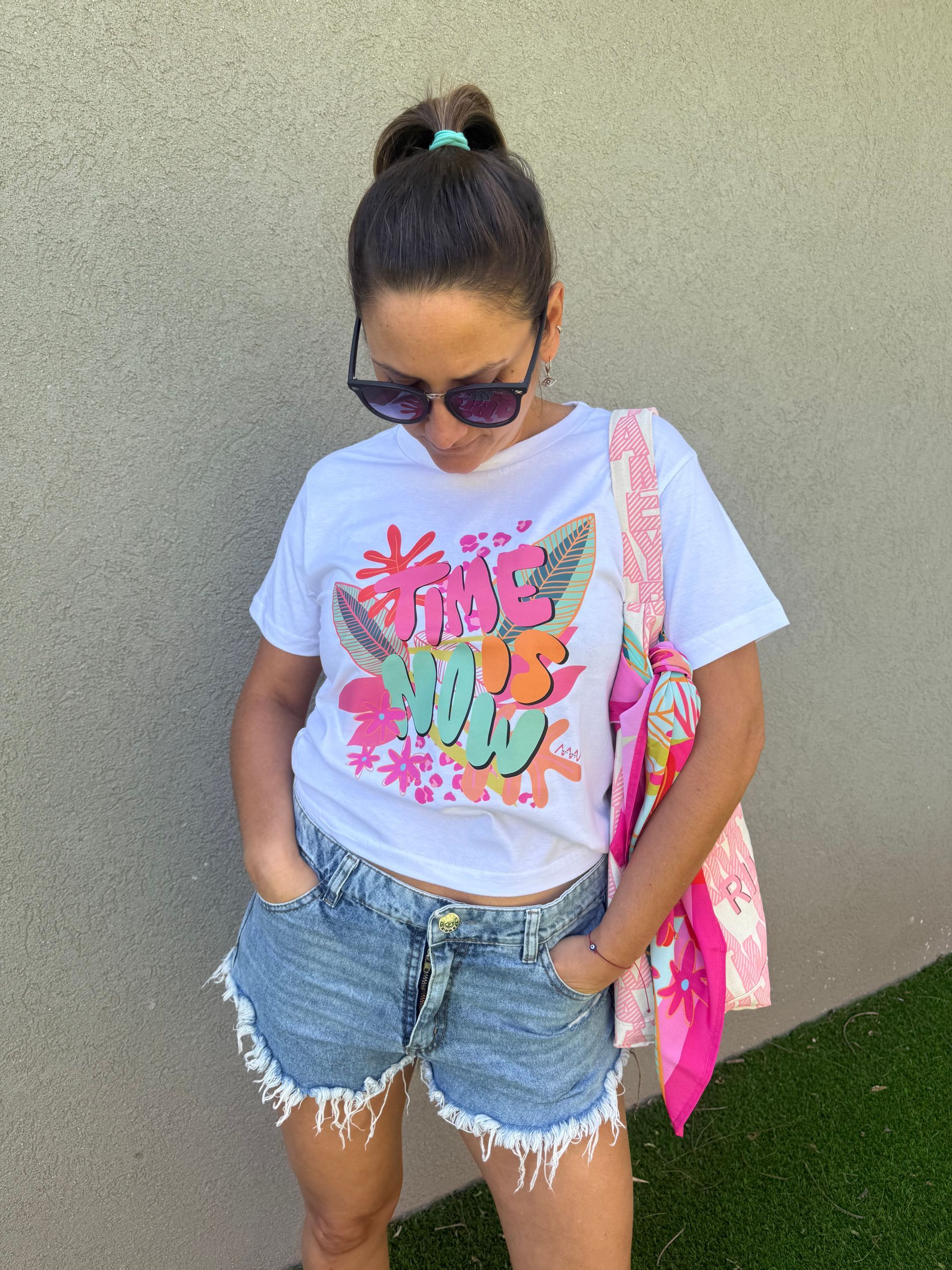 remera corta estampada "time is now"